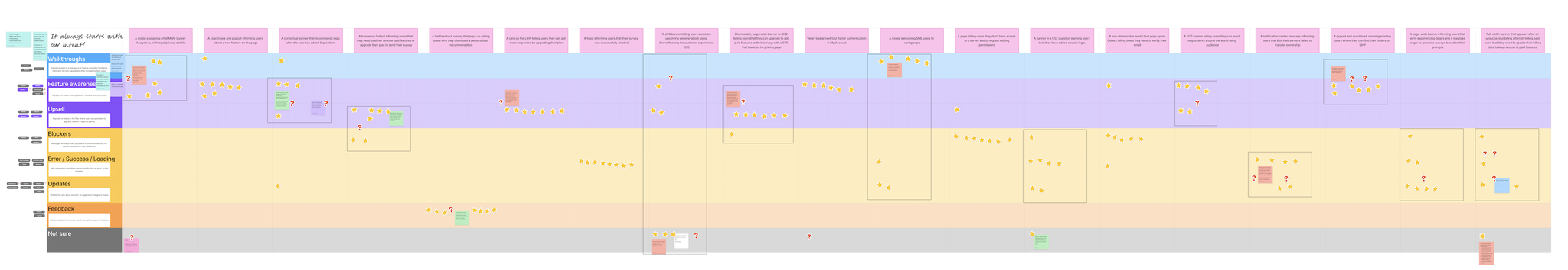 Next, my design partner and I researched best practices around using notifications and led a workshop with other designers. We asked them to share examples of notifications they've created and choose a category that best described the message purpose. They left stickies explaining how difficult or easy it was to decide between the categories we provided.